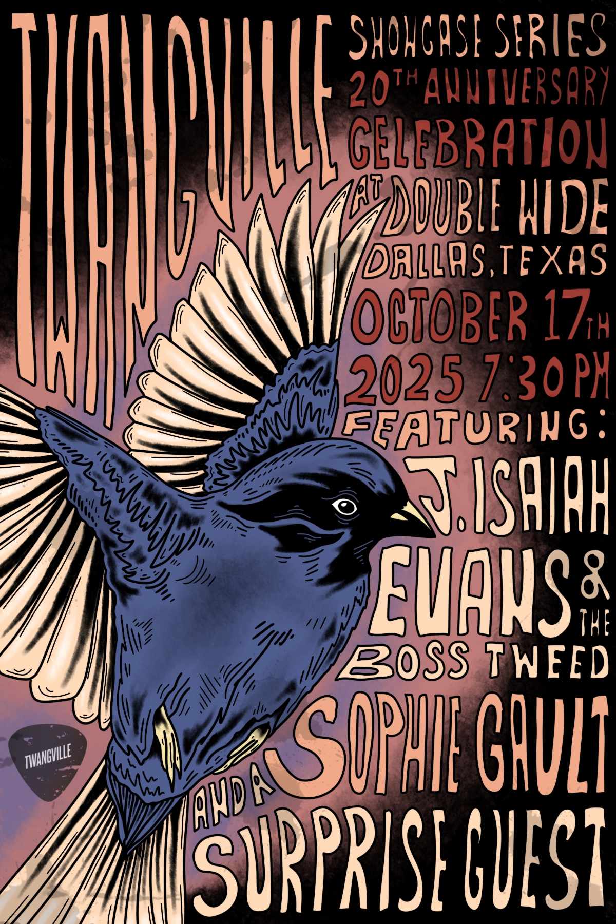 We started Twangville twenty years ago to champion the artists creating songs with craft and conviction—the kind that deserve your attention. This month, we’re marking two decades with three shows that capture everything we’ve been about from day one. Dallas gets two this weekend, New York City gets one on the 24th. Here’s the lineup.
