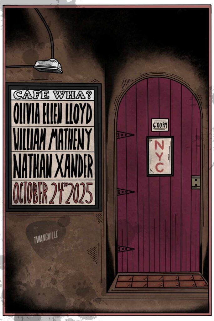 We’re taking over the legendary Greenwich Village room where Dylan played his first NYC shows. Olivia Ellen Lloyd, William Matheny, and Nathan Xander each bring sharp songwriting and vivid storytelling to a stage that’s seen more than its share of both.
