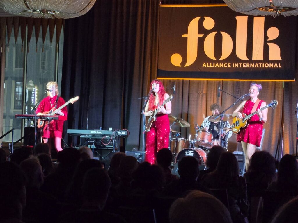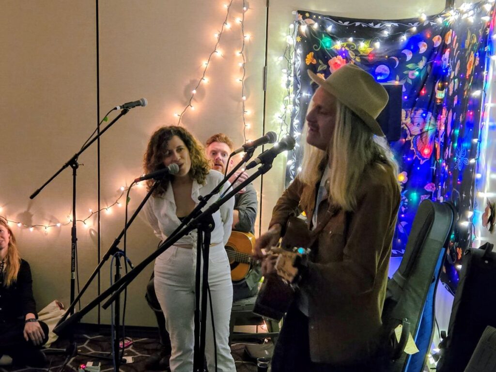 Folk Alliance International isn’t your typical music conference. Held this year in New Orleans, days include industry panels, seminars, and public showcases in hotel ballrooms, but the real magic happens late at night when up to 100 hotel rooms transform into intimate “private showcases”—artists who normally fill 500-seat theaters performing for 20 people at a time, running from 10:30 p.m. until 2 or 3 a.m., often followed by late-night jam sessions that stretch until sunrise. It’s an overwhelming amount of music happening simultaneously, where you can bounce between rooms and catch dozens of performances in a single night.